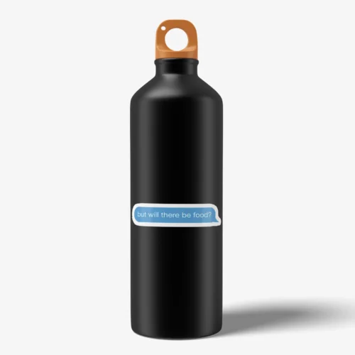 • Bold Design: Features a striking “But will there be food sticker” illustration.