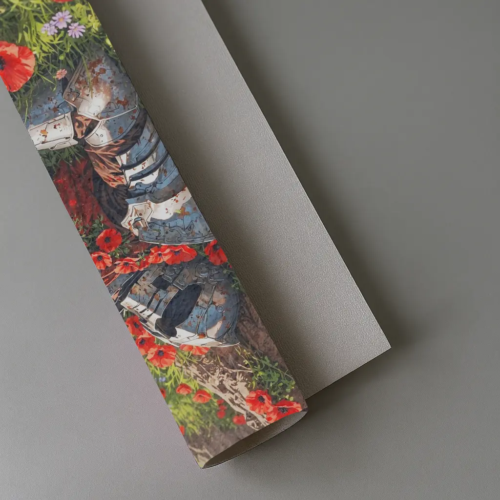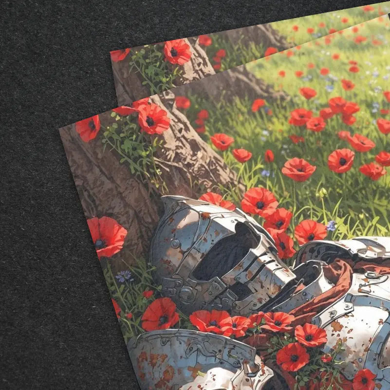 - Premium textured art print featuring a knight in a poppy field