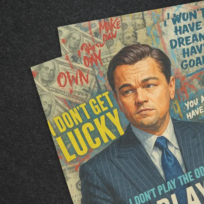 - Textured fine art print of Leonardo from Wolf of Wall Street