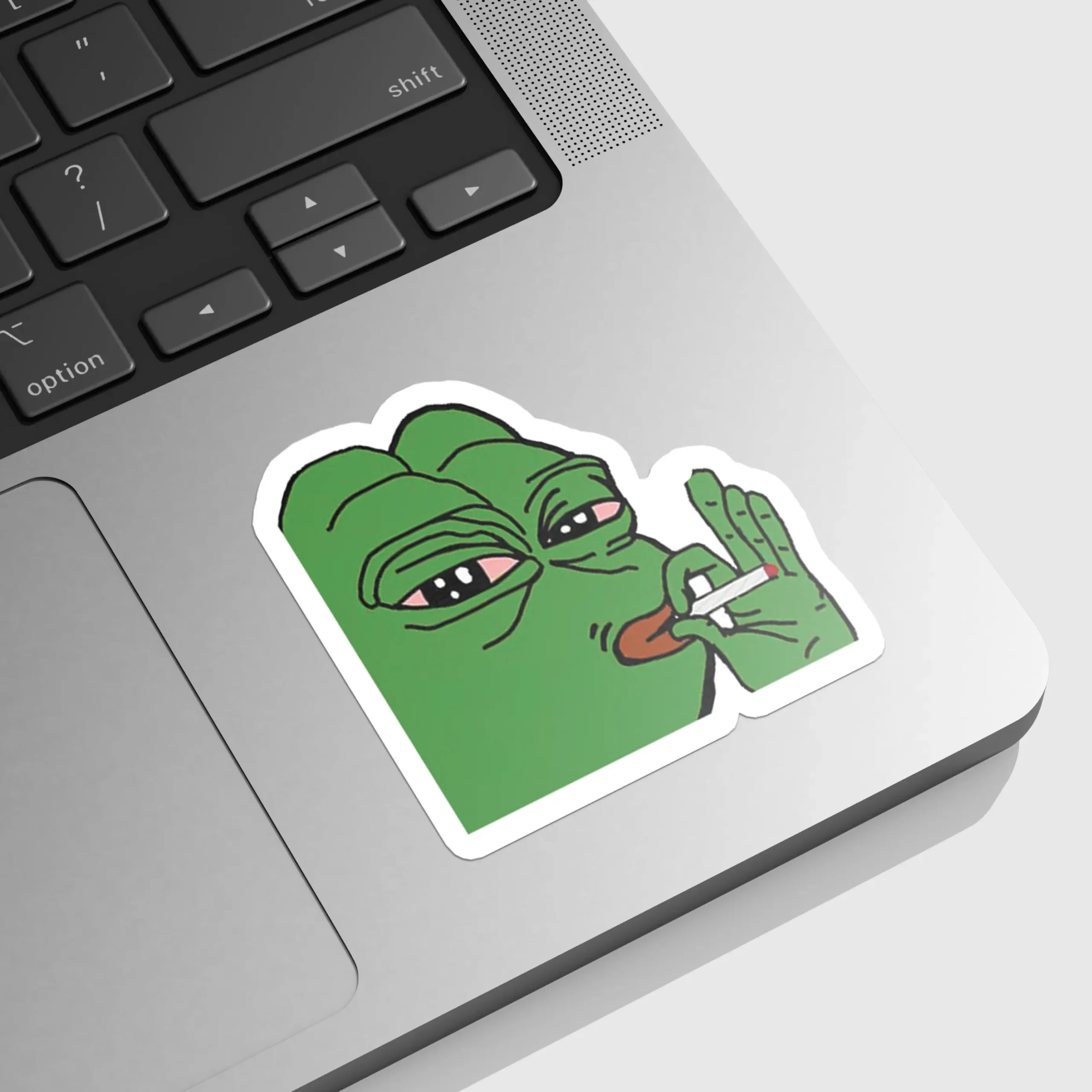 - PVC Sticker featuring the beloved Pepe the Frog Smoking Cannabis cartoon character.