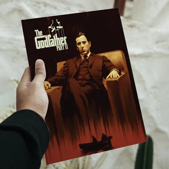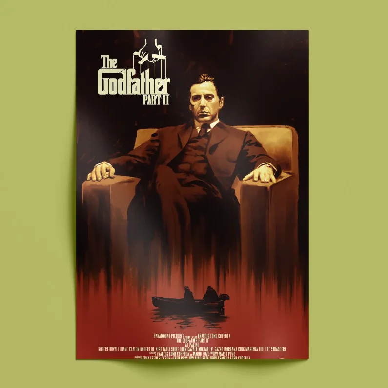 Tags: 70s classic cinema print, al pacino cinematic print, classic movie wall art, deep character study decor, epic storytelling artwork, francis ford coppola masterpiece, historical film aesthetic, iconic gangster artwork, legendary drama poster, mafia film decor, organized crime illustration, powerful film scene illustration, the godfather part 2 poster, timeless movie memorabilia, vintage film aesthetic